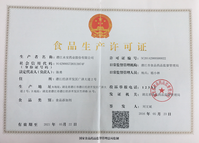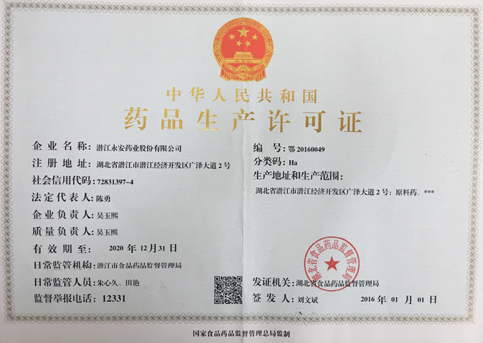 潛江永安藥業(yè)股份有限公司成立于2001年,坐落于江漢平原腹地潛江市國(guó)家高新技術(shù)產(chǎn)業(yè)開發(fā)區(qū),占地500余畝,注冊(cè)資金貳億玖仟肆佰陸拾捌萬(wàn)貳仟伍佰元整,是一家擁有自主知識(shí)產(chǎn)權(quán)的國(guó)家高新技術(shù)企業(yè)。公司股票于2010年3 月5日在深圳證券交易所掛牌上市(股票代碼為002365)。公司具有雄厚的技術(shù)開發(fā)能力,是湖北省創(chuàng)新型企業(yè)和湖北省知識(shí)產(chǎn)權(quán)建設(shè)示范企業(yè)。公司研發(fā)平臺(tái)分別被認(rèn)定為省級(jí)企業(yè)技術(shù)中心和湖北省功能性食品添加劑工程技術(shù)研究中心。 經(jīng)過多年的發(fā)展,公司形成了以食品及藥品添加劑牛磺